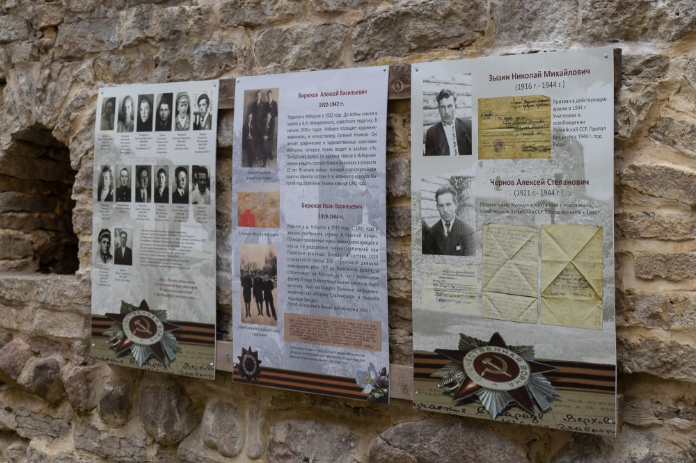 Обновлённую выставку «Победители» открыли в Никольском захабе Изборской крепости. В этом году выставка дополнилась информацией ещё о пяти героях.