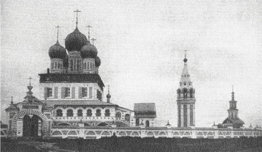 Первый храм Борисоглебской слободы был построен монахами в 1238 году в честь святых страстотерпцев князей Бориса и Глеба. Во времена Иоанна Грозного здесь возвышалась двухэтажная церковь «брусчатая с пятью куполами». По преданию, вплоть до XVII века в слободе имелась монашеская обитель.